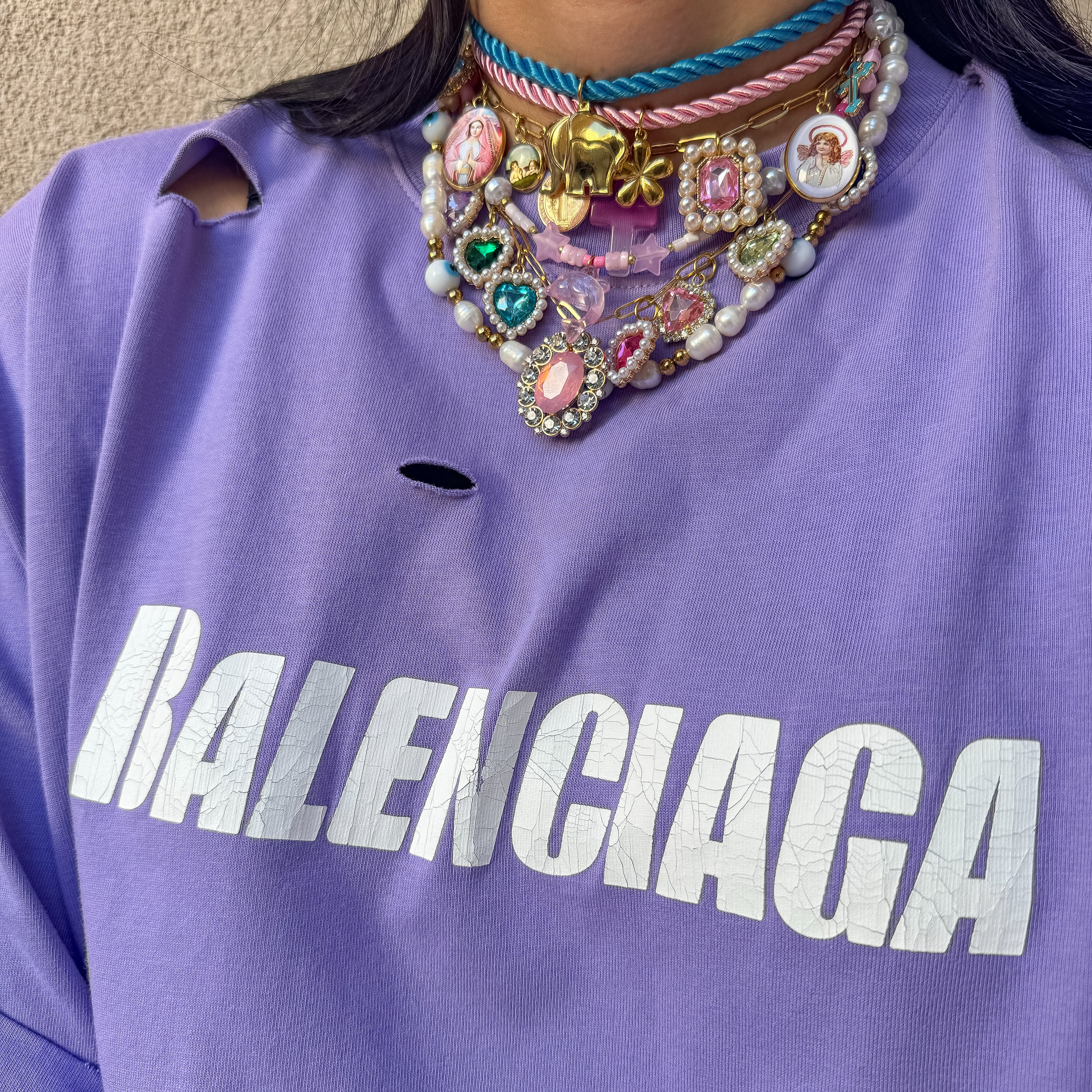 Collana con perle di conchiglia rosa e perle di vetro biancheÂ